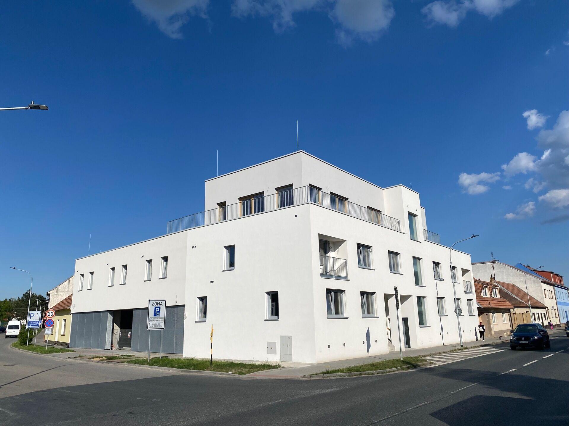 V exkluzivním zastoupení nabízím luxusní byt 2kk s nadstandardní výbavou a sklepem v Hustopečích u Brna. Byt je součástí nového bytového komplexu s 8 byty a zařízenou společnou terasou o rozloze 272 m2.