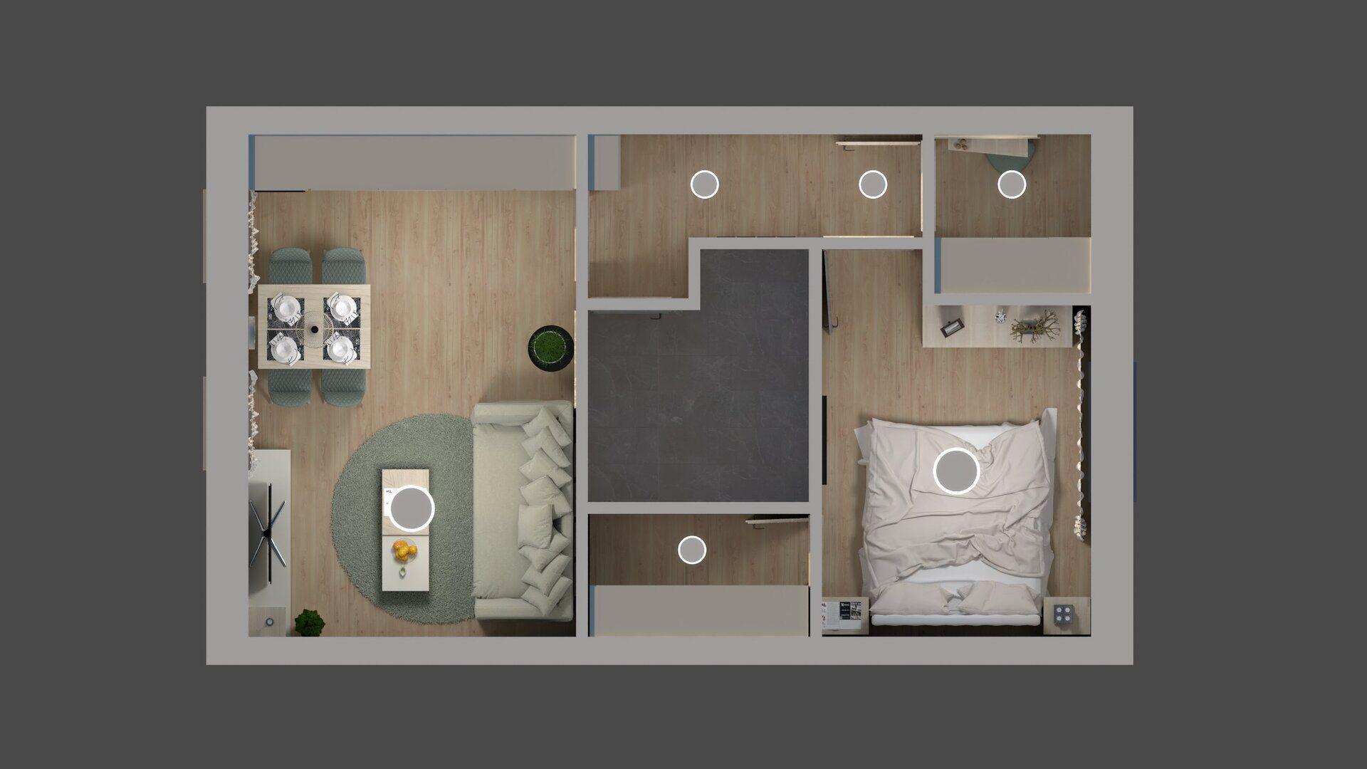 Byt s užitnou plochou 51 m² nabízí prostorný obývací pokoj s kuchyňským koutem, který je ideální pro společně strávené chvíle. Moderní design a kvalitní povrchové úpravy zajišťují příjemnou atmosféru a komfort. Ložnice nabízí prostor k zařízení a trojskla na oknech k maximálnímu odhlučnění a venkovní elektrické žaluzie k maximálnímu zatmění. Velká šatna potěší nejen dámy.